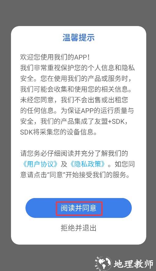 1、首次启动应用时,请点击弹窗中的同意选项,方可进入主界面开始使用。