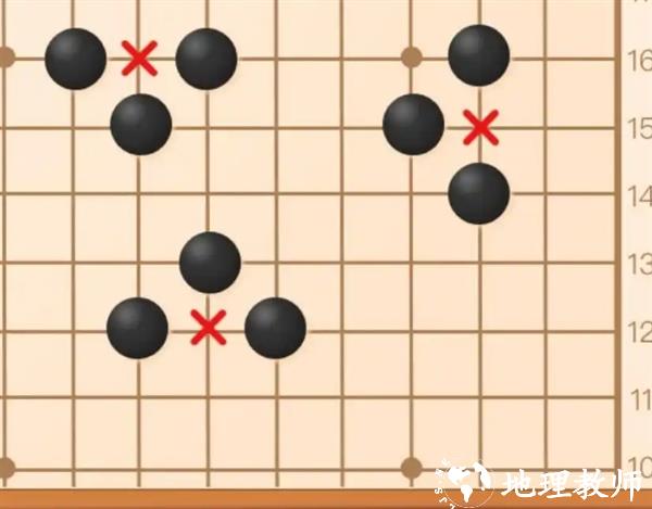 如图所示,虎口就是由三子呈“品”字形,从三面围拢着中间的那个交叉点。