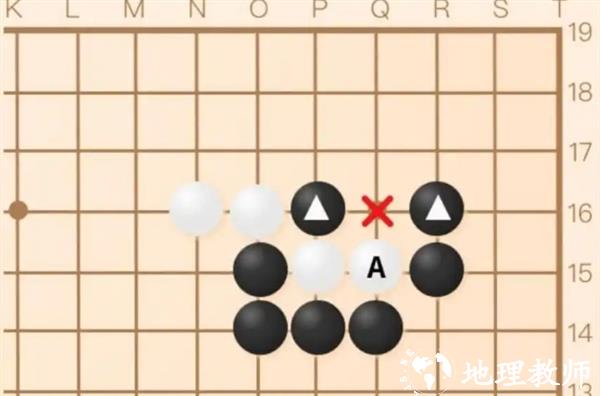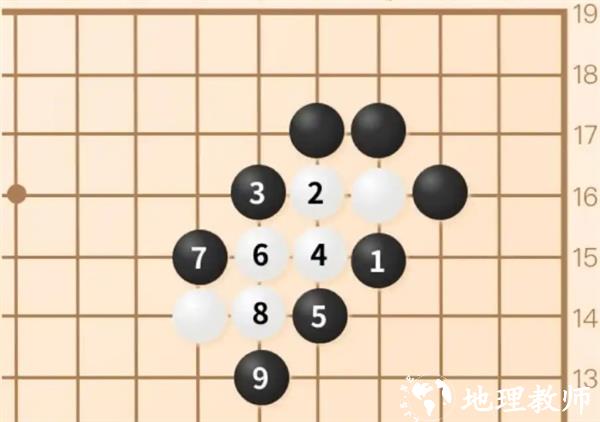 和前两个吃子方法都不同,它并没有直接堵住白棋的气,而是远远地营造一个包围圈,将对方的棋子网罗在自己的包围圈之中进行围捕的技术,是一种相对高级的吃子战术。