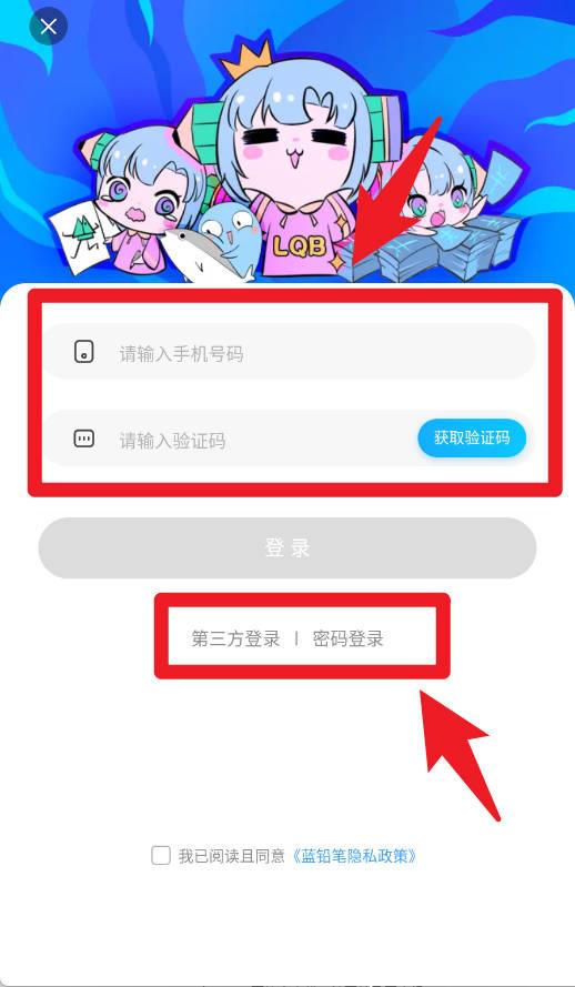 1、进入时,需要输入手机号并获取验证码完成登录,也可选择第三方或密码方式登录。