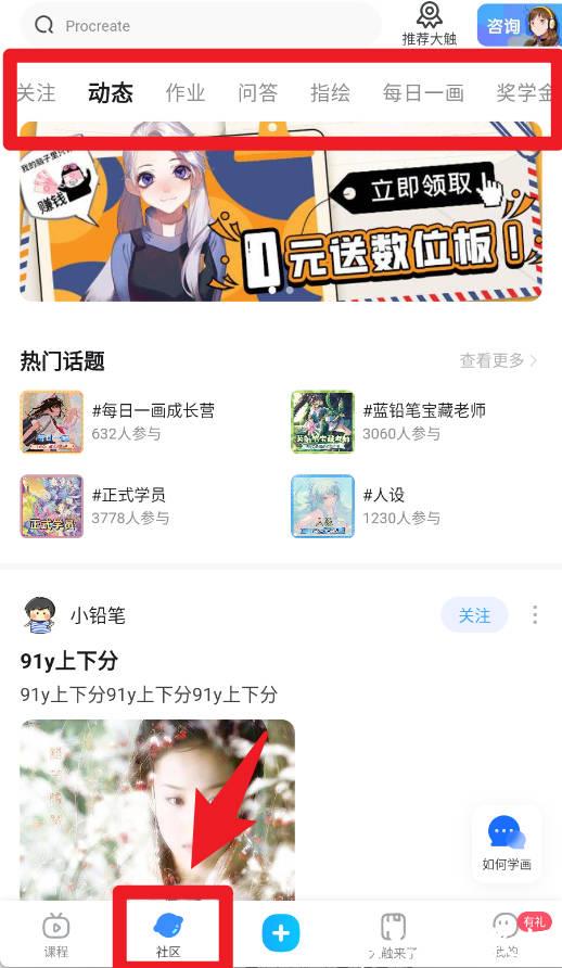 3、社区版块聚集了大量绘画爱好者,能浏览动态、作业、指绘等,形成良好的学习氛围。
