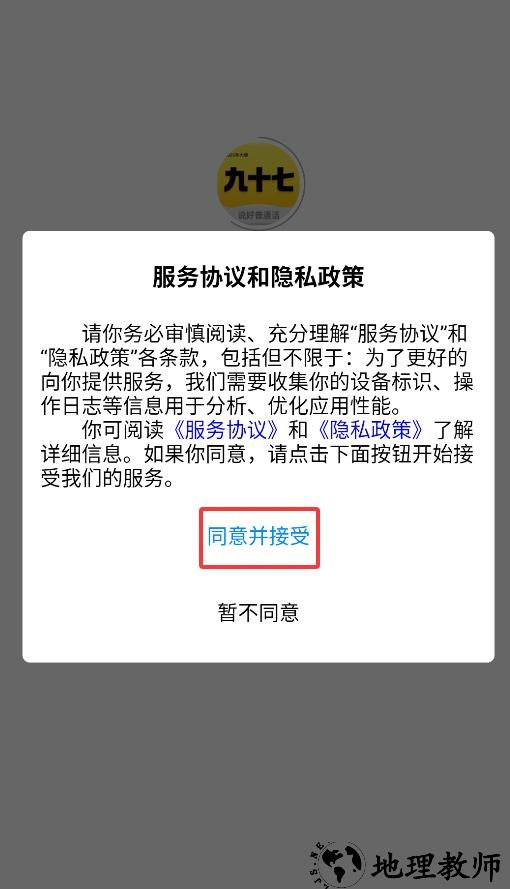 1、首次启动应用时,请点击弹窗中的同意选项,方可进入主界面开始使用。