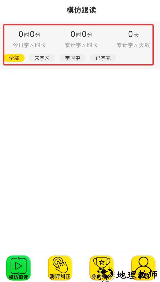2、在模仿跟读板块,可查看今日学习时长、累计学习时长及坚持天数。