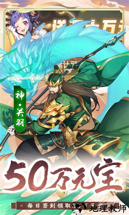 2、登录即可领取传说级神将「精卫」与「红孩儿」。通过连续签到,更能免费获得极品神将「武圣关羽」。