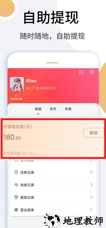 5、进入个人中心的提现页面,可随时随地自助提现,轻松管理收益。