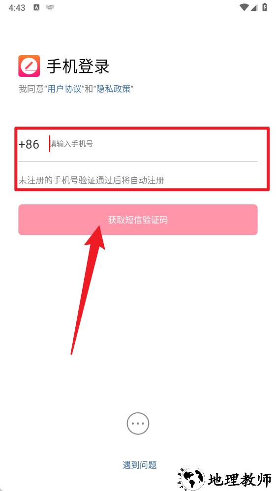 1、进入登录页面,输入手机号并获取短信验证码,未注册的手机号验证后将自动完成注册。