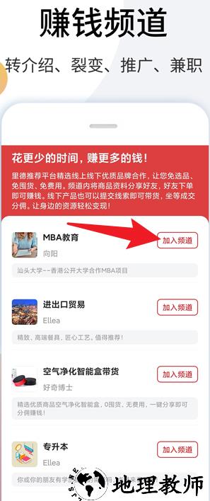 2、在各频道中,可以加入不同的推广或兼职渠道,如教育、贸易等。