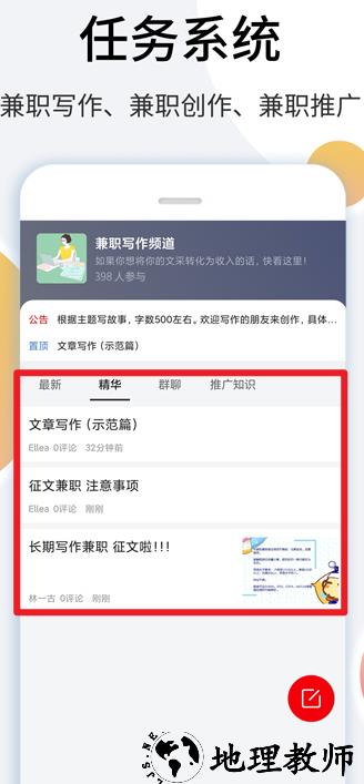 4、在任务系统中查看并领取写作、推广等任务,完成后可获得相应奖励。