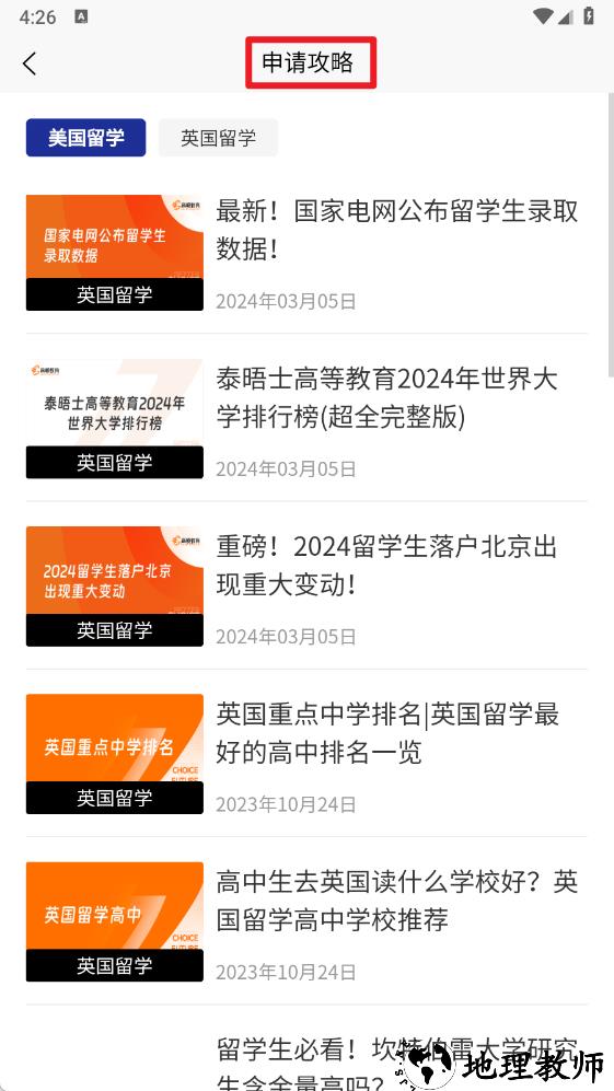 3、点击申请攻略,可浏览最新的留学资讯与政策解读,帮助规划申请步骤。