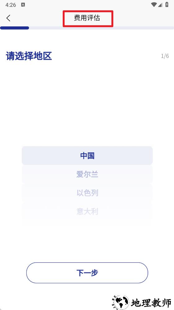 4、进入费用评估,选择地区即可估算留学所需的费用情况。