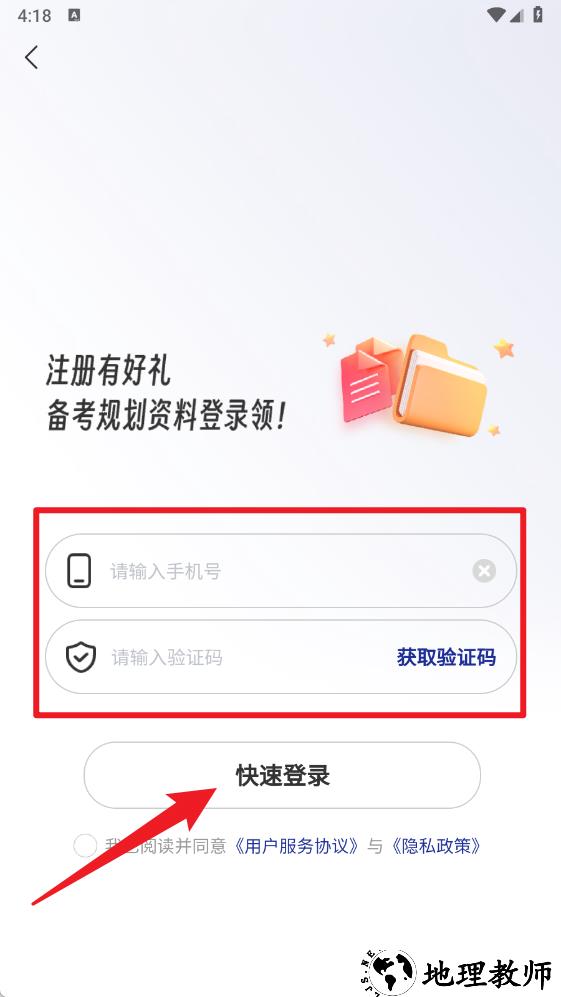 1、进入登录页面,输入手机号并获取验证码后,点击快速登录即可进入应用。