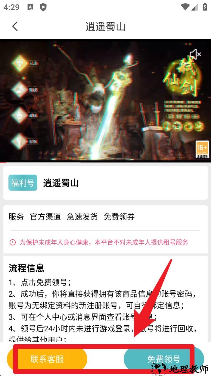 2. 进入任一游戏详情页后,点击免费领号按钮,即可一键领取官方认证的专属福利游戏账号。