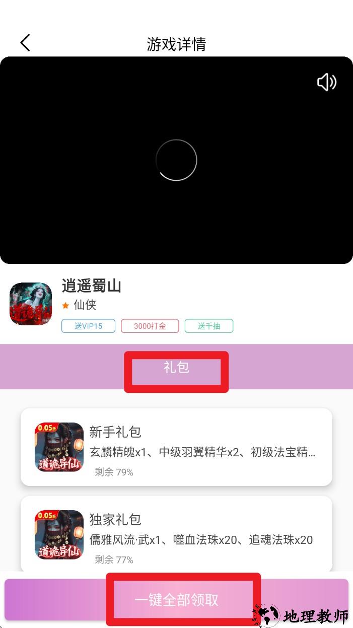4. 进入礼包详情页后,点击礼包页签下的一键全部领取按钮,领取当前游戏所有可用礼包。