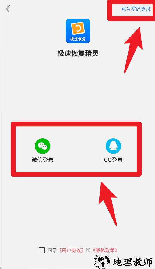 1、进入软件可选择微信方式进行快捷登录,能通过账号密码登录,确保在安全认证后进入主界面开始使用恢复功能。
