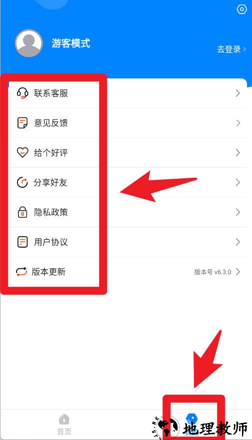 5、我的页面提供联系客服、意见反馈、隐私政策、版本更新等功能,用户还能进行分享或给出评价。