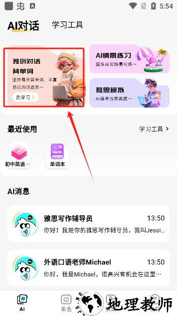 1、AI 外教陪练:拥有全天候口语陪练系统,提供真实对话体验,同时给出即时反馈。