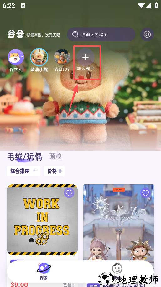 1、打开谷仓 app 后,在页面中寻找 “加入圈子” 按钮,点击该按钮即可开启圈子探索之旅。