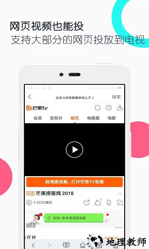1. 支持本地视频投屏,无需转换格式,即可将手机上的视频直接投放到电视。