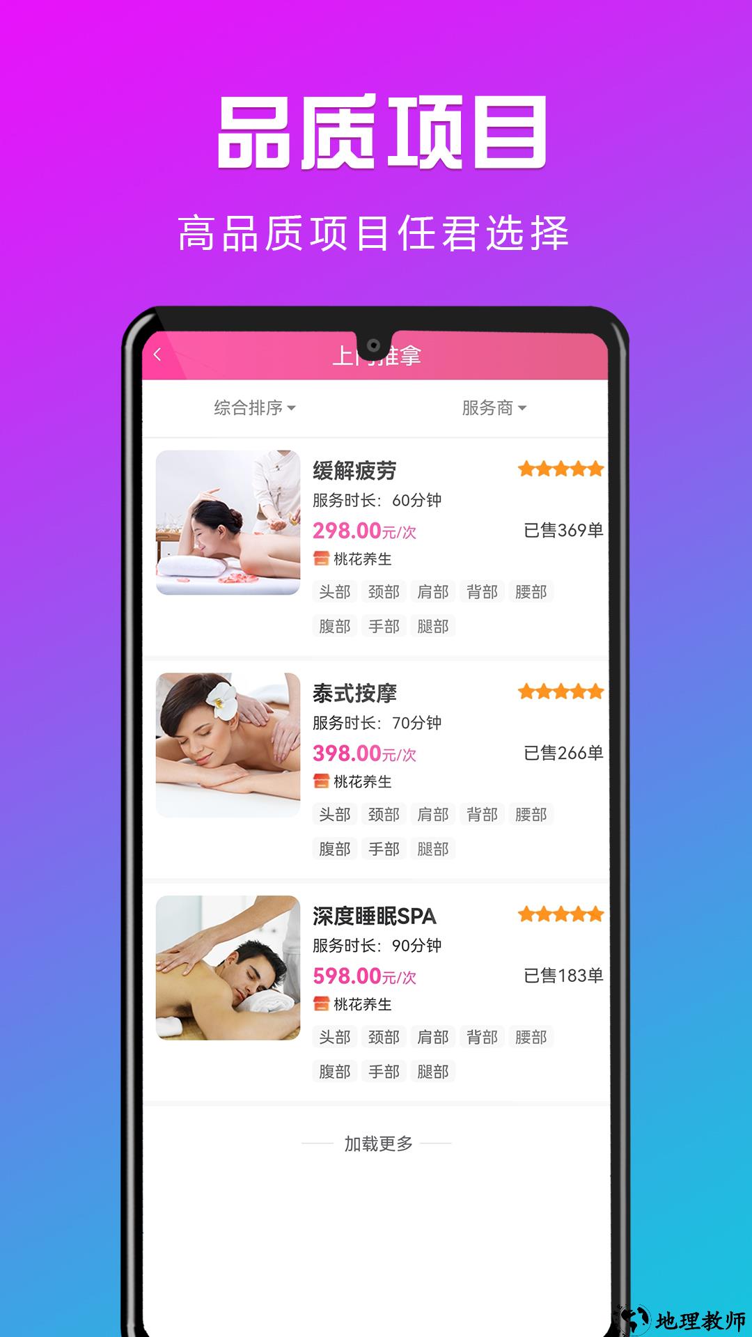 3. 服务项目选择:平台提供多种按摩服务项目,包括按摩种类、时间和技师的选择,满足不同用户的需求。