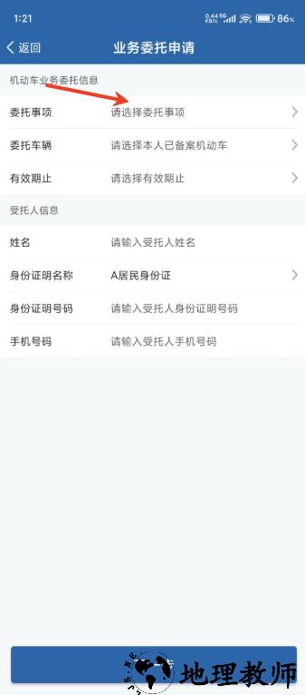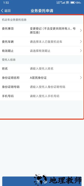4.点击业务委托申请,