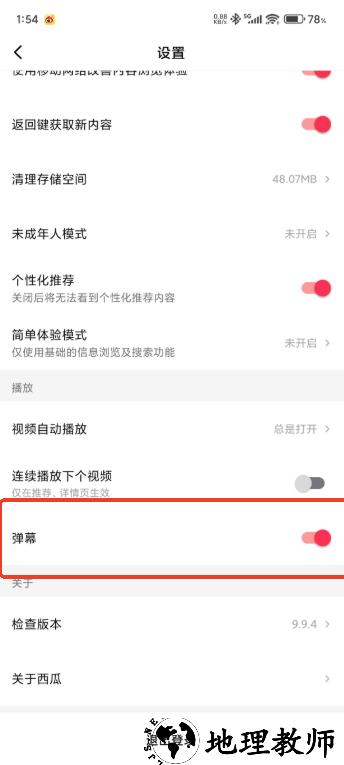 4.向下滑动将弹幕打开,