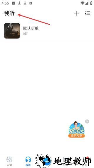 2、切换至我听界面,系统预设听单分类,目前听单内歌曲数量为 0.该板块可用于音频管理。
