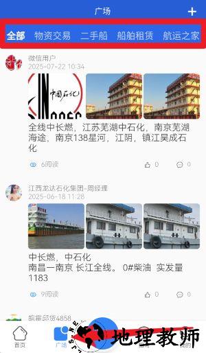 6、在广场频道,用户可浏览船运圈的交易动态、二手船信息及租赁消息,促进行业交流与合作。