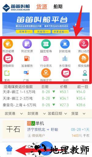 2、在首页功能区,用户可以选择附近船期、货源、加油服务等多项服务,快速获取水运相关信息和资源。