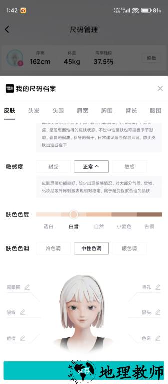 5.自由调整你的皮肤状态,腰围,头发,肩宽,胸围等,