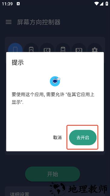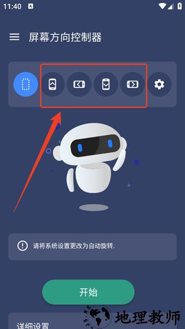 3、完成权限授予后返回应用,在主界面选择需要的方向模式,可进行锁定或旋转设置。