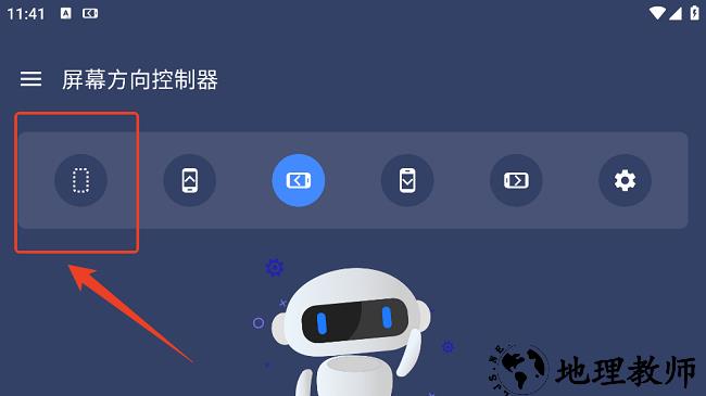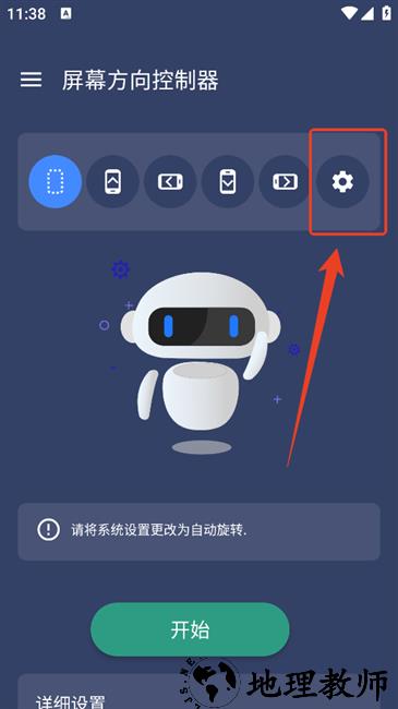 1、打开屏幕方向控制器 app,在界面中找到齿轮图标,点击进入设置页面。
