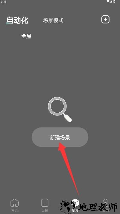 3、进入场景管理界面,点击新建场景功能按钮开始创建个性化智能场景设置。