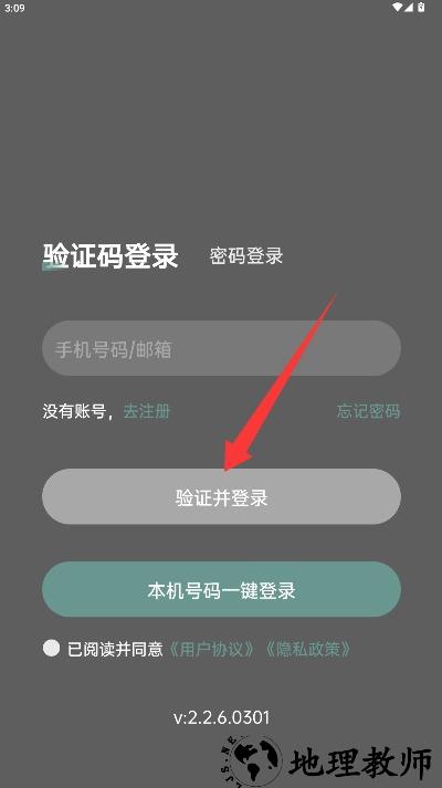 2、在登录界面输入手机号码或邮箱,勾选同意相关协议后点击验证并登录进入。