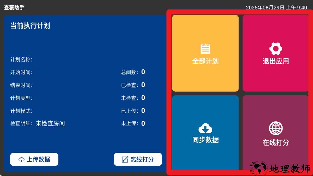 2、在主界面中可查看当前执行计划,点击全部计划、同步数据或在线打分按钮,快速进入对应功能区,便于管理与操作。
