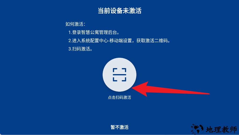 1、首次使用查寝助手时,若提示设备未激活,需要进入智慧公寓管理后台,在系统配置中心获取激活二维码。