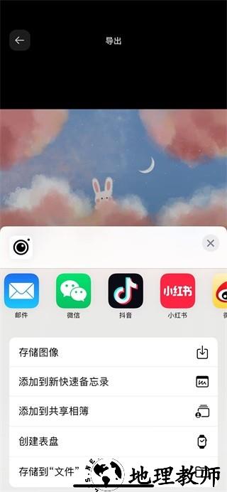 点击保存后,可将照片分享至社交平台或直接存储在设备内。如图所示。