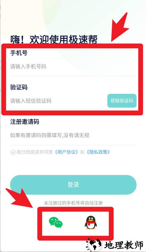 1、在登录界面,用户需要输入手机号并获取短信验证码完成验证,也可以通过微信或QQ账号快捷登录。