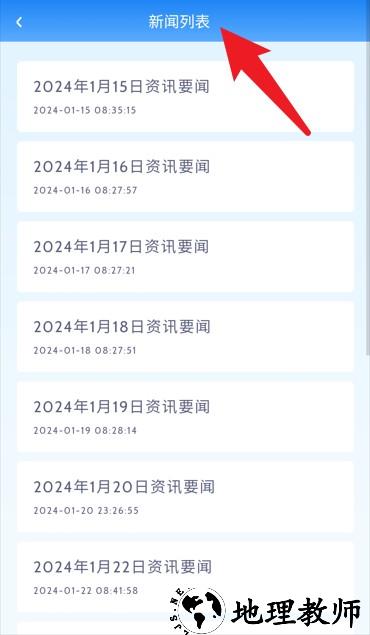 4.点击顶部新闻列表标题,可查看每日资讯要闻及相关发布时间。
