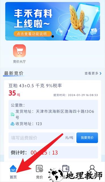 2.登录成功后默认进入首页,可查看最新竞价信息与倒计时等内容。