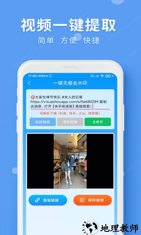 3.复制视频链接后,打开提取的视频删除水印,微博删除水印,妙拍拍去除水印。