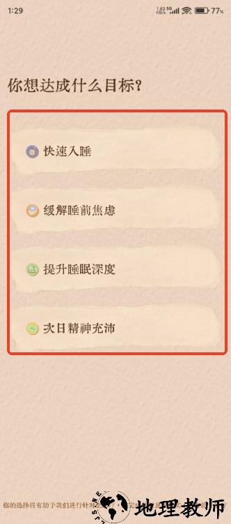 2.根据你的睡眠状态选择最想达到的目标,