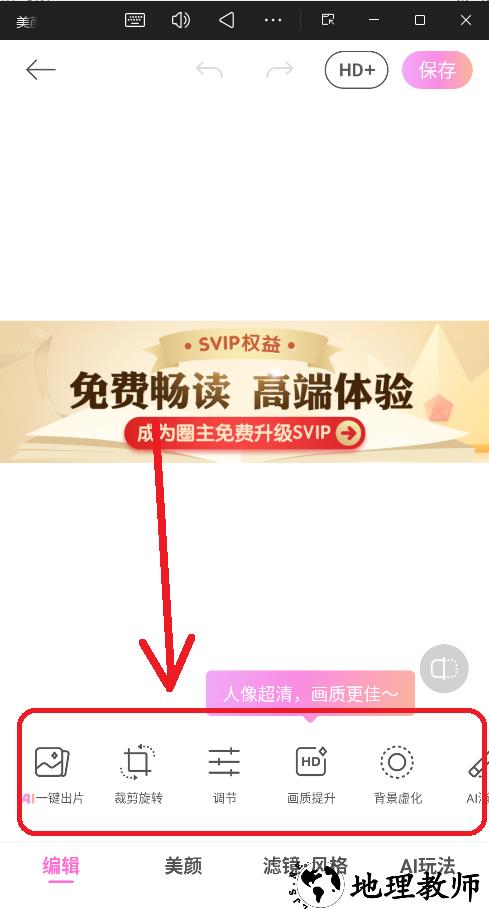 3、使用下方工具栏的美颜、滤镜、瘦脸瘦身等功能进行美化。