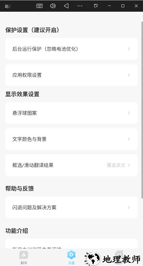 保护设置:强烈建议开启“后台运行保护”,防止系统自动清理后台导致悬浮球失效。