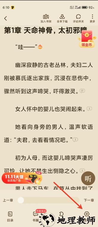 2.点击右下角的阅读设置,