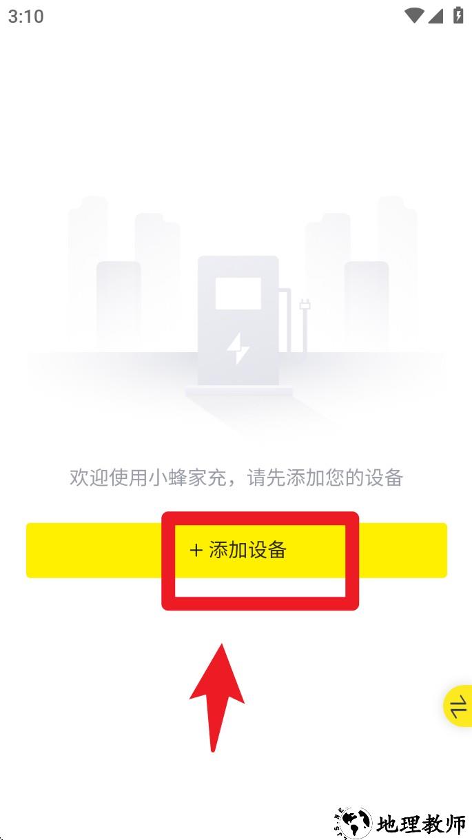 2. 登录成功后会跳转到欢迎页,点击添加设备以开始绑定您的充电设备。