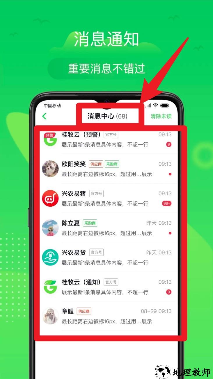 4. 进入消息中心可查看系统通知、检疫预警、供需信息等动态消息,避免错过重要更新。