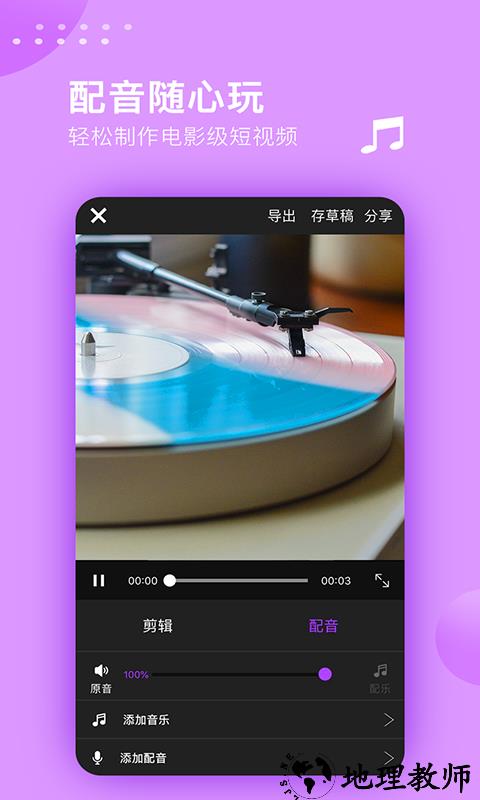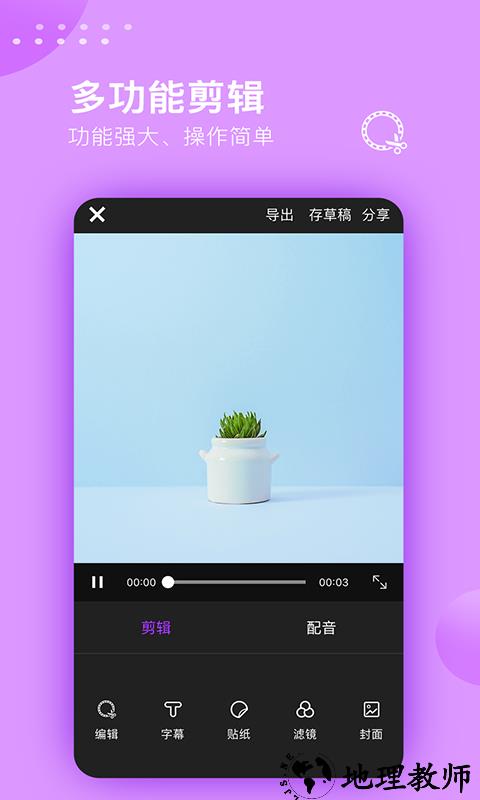 视频剪辑大师是一款手机视频剪辑软件,支持视频剪切、水印去除、特效添加、视频倒放等等便捷功能。用户能够通过软件轻松剪辑出满意的视频,还能给自己的视频添加标签,方便检索,感兴趣的小伙伴赶快来地理教师下载站下载吧!