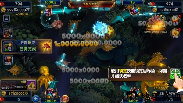 1、火力覆盖:这是游戏内的核心对战技能,在捕鱼对战期间可通过积累能量条(攻击普通鱼类即可积攒)激活该功能。激活后将触发全屏范围攻击,持续 5-10 秒,期间对范围内所有鱼类(包括小型鱼类和 BOSS)造成高额伤害,有概率直接捕获高价值目标,能额外获得积分翻倍、道具掉落率提升等好处,是快速积累收益的关键手段。