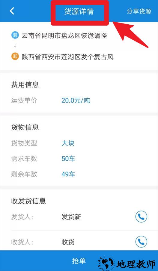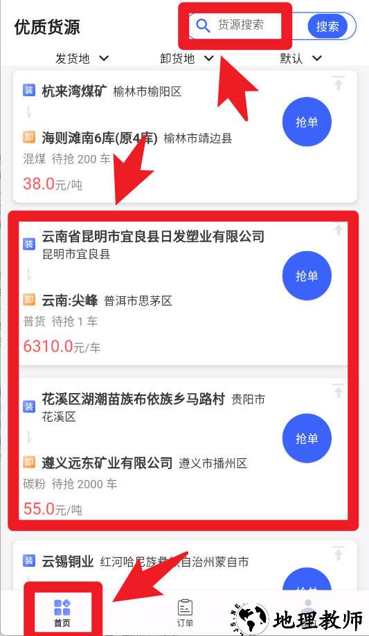 3、通过货源搜索功能,司机可以精准查找所需货源,并在货源列表中一键抢单。