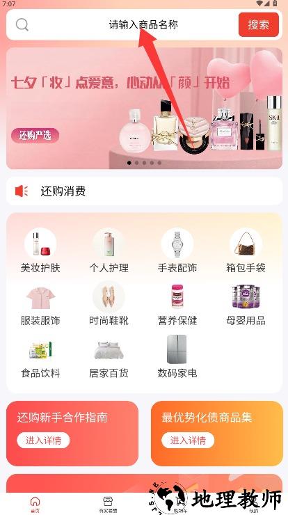 3、在首页界面顶部搜索栏输入商品名称或相关关键词,搜索需要的商品进行浏览。
